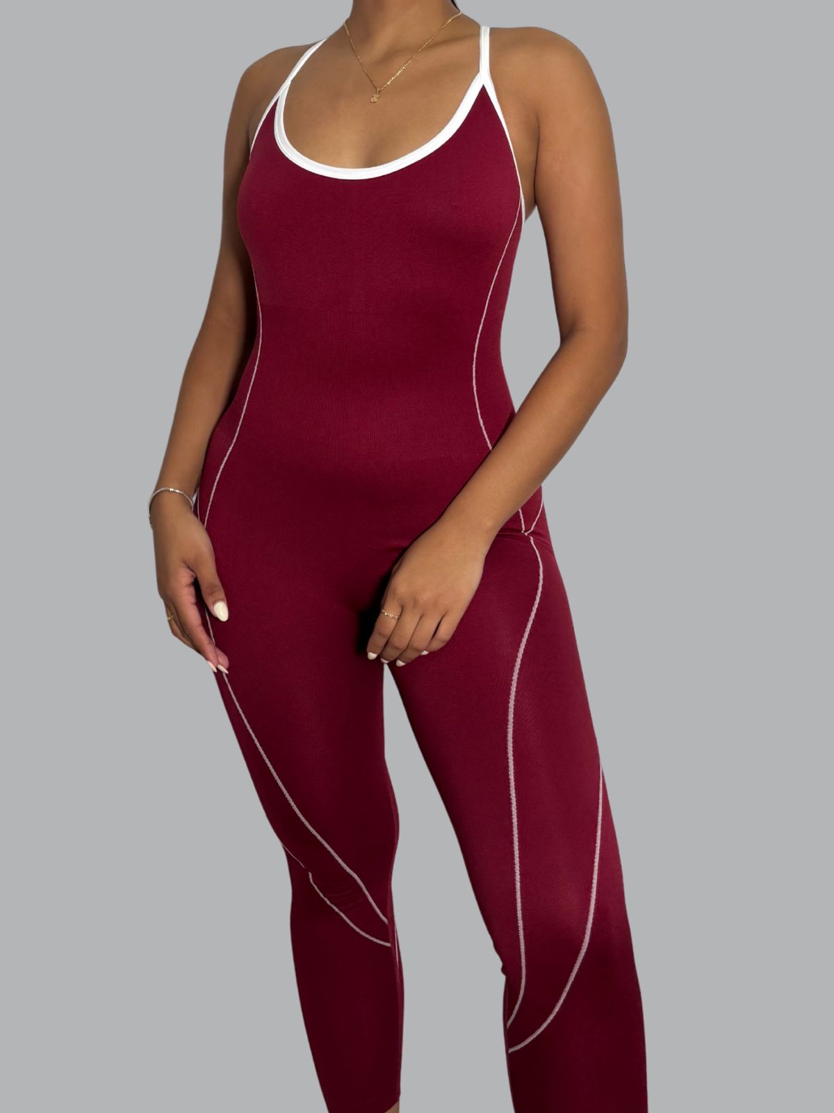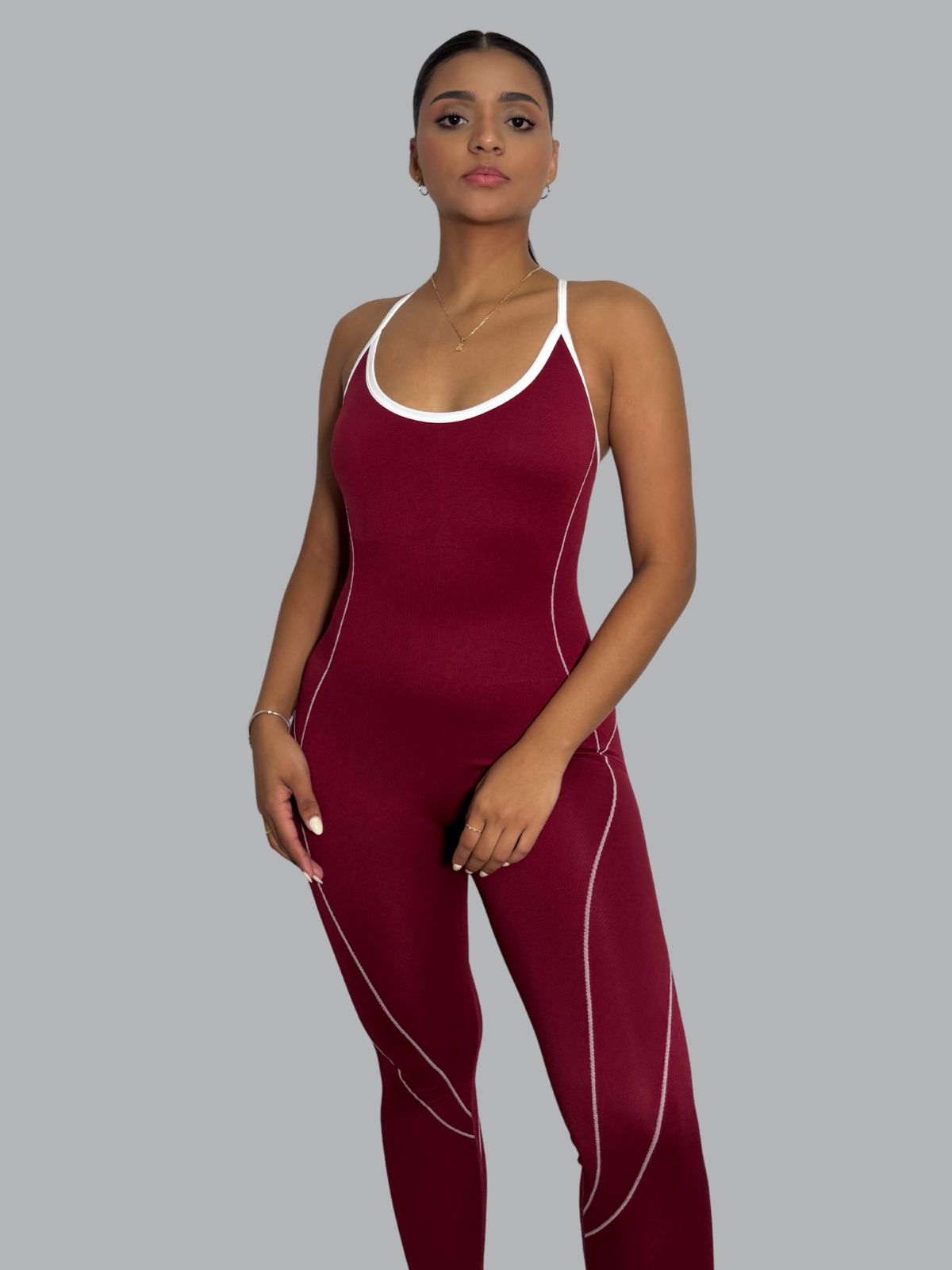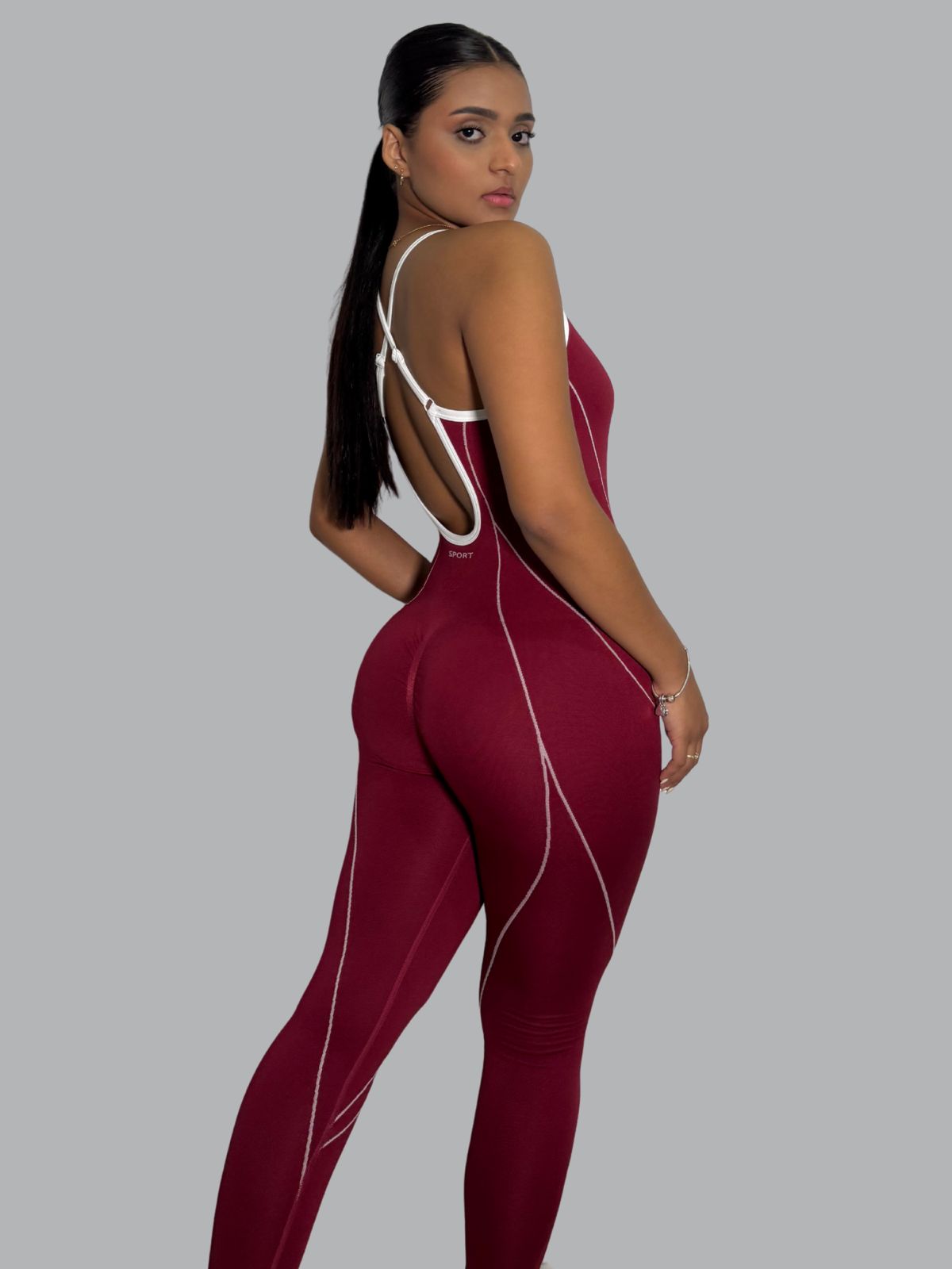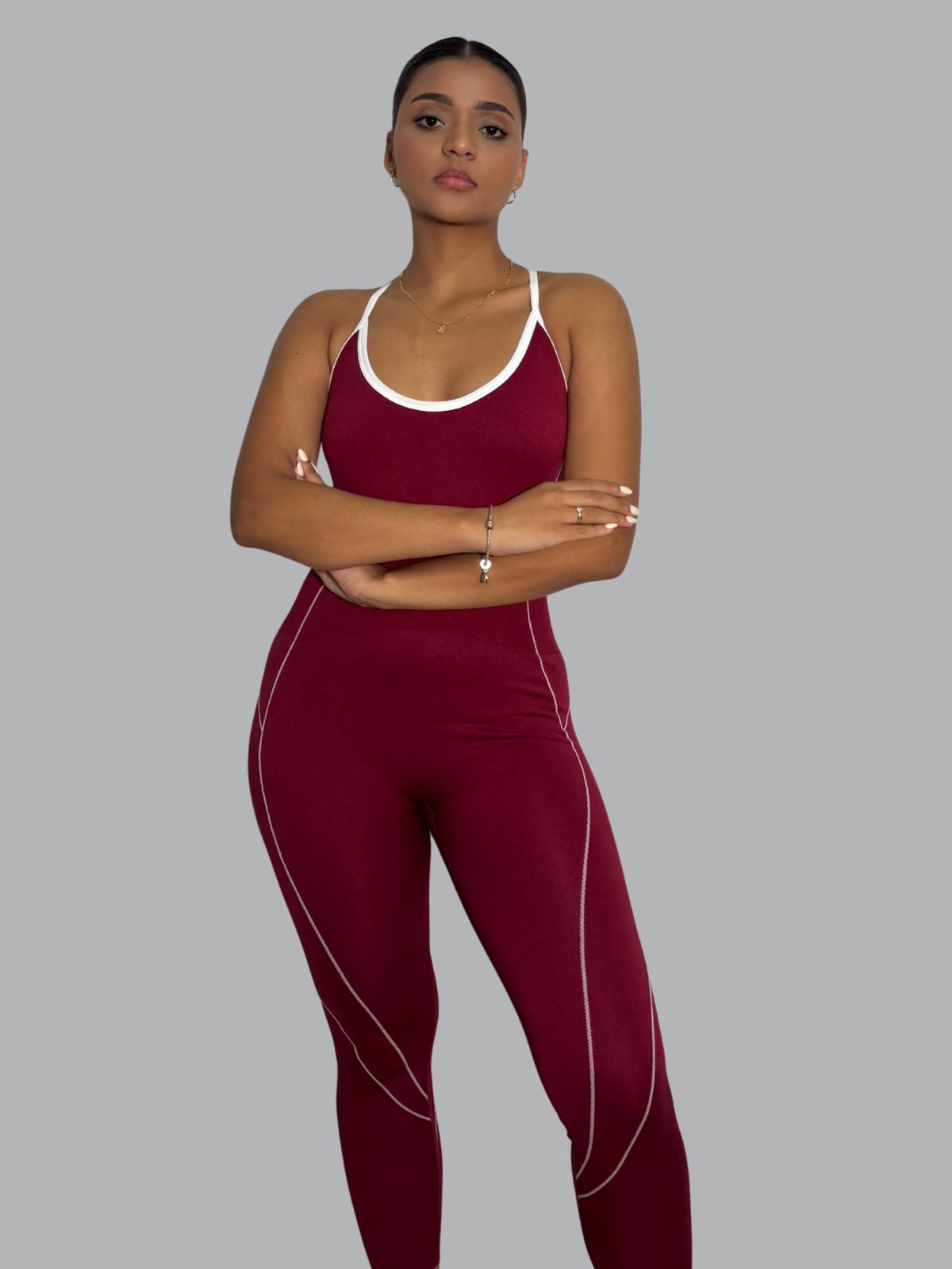 Este enterizo con detalles en blanco y costuras en contraste está diseñado para realzar tu figura con elegancia y poder. Su diseño de espalda abierta, tiras delgadas y tejido ajustado con efecto push-up en glúteos lo hacen ideal para entrenar con estilo o lucirte en el día a día. ¡Comodidad, firmeza y actitud en una sola prenda!